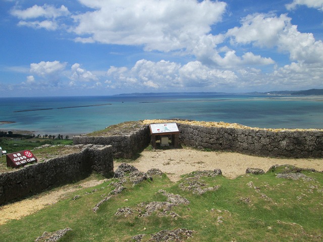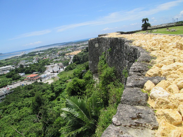 15世紀 海外貿易により勝連に繁栄をもたらした阿麻和利が居城したとして有名な勝連城趾。 具志川から勝連に向かう途中にある城址公園で、高台にあり、見晴らしは良好です。うるま市石川、金武まで見えます。 結構 上まで行くので飲み物を持って熱中症に注意して下さい。 また、スマホで色々解説があるようです。